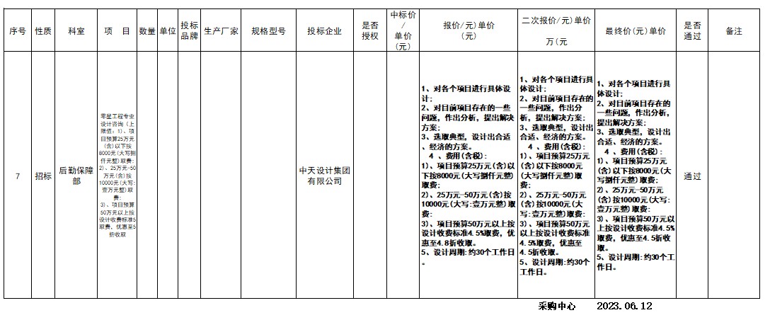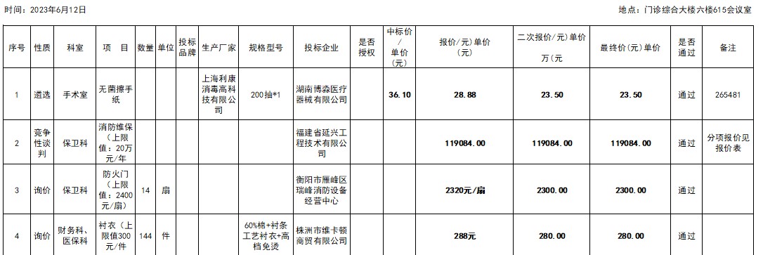 衡陽市中心醫(yī)院2023.6.12院內(nèi)招標(biāo)議價(jià)結(jié)果公示 發(fā)布時(shí)間:2023年06月15日 17:50:09 預(yù)覽:124363次