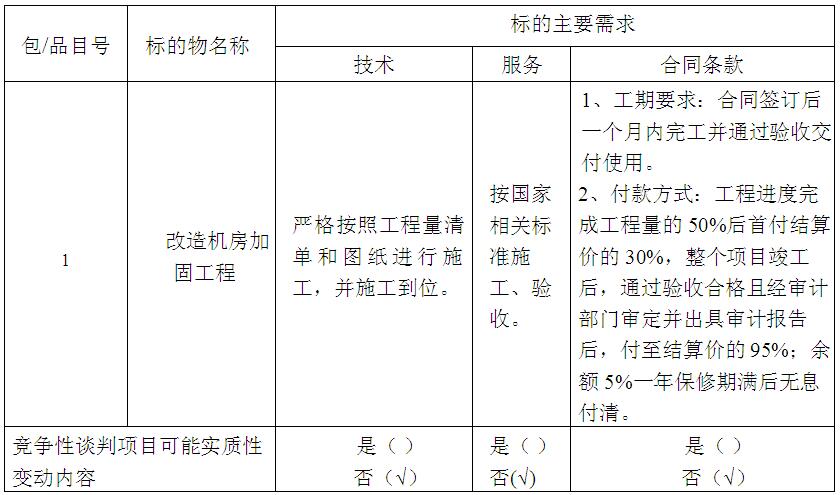 4、采購項目的主要需求及談判可能實質(zhì)性變動內(nèi)容: