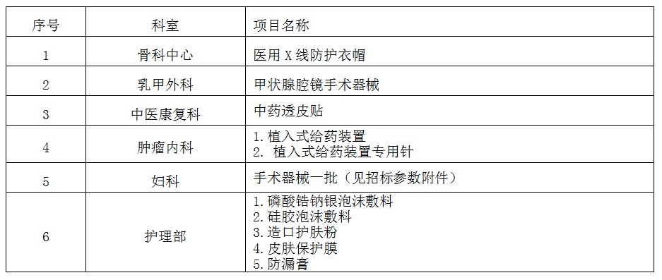 因醫(yī)院發(fā)展的需要,我院擬于近期對(duì)一批醫(yī)療耗材進(jìn)行院內(nèi)招標(biāo)采購(gòu),歡迎具備條件的公司報(bào)名參加。