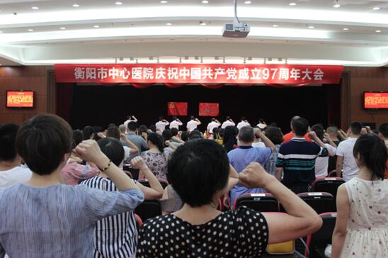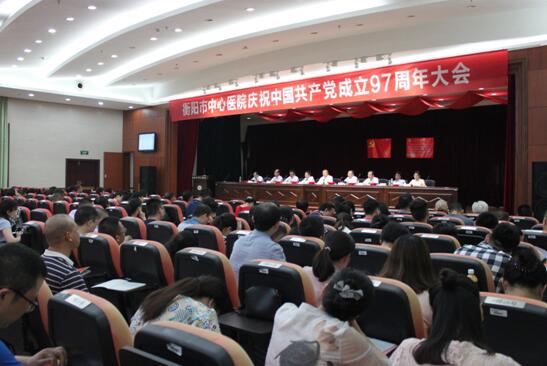 通訊員唐冠群報(bào)道:為慶祝中國共產(chǎn)黨成立97周年,進(jìn)一步加強(qiáng)醫(yī)院黨支部及黨員隊(duì)伍建設(shè),激勵(lì)廣大黨員干部堅(jiān)定理想信念,激發(fā)全院黨員“不忘初心、牢記使命”的責(zé)任擔(dān)當(dāng),形成最強(qiáng)執(zhí)行、凝心聚力、積極向上的濃厚氛圍,6月29日,衡陽市中心醫(yī)院慶祝中國共產(chǎn)黨建黨97周年大會在莊嚴(yán)的國歌聲中隆重開幕。全體院黨委委員、全體在職黨員、退休支部支委近300人參加了會議,院黨委書記肖友儒發(fā)表講話并講黨課,院長、黨委副書記申惠龍主持會議。