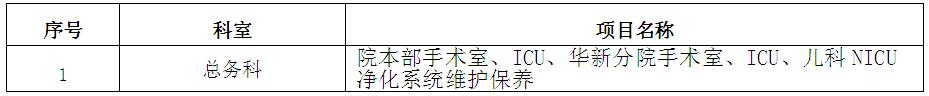 因醫(yī)院發(fā)展的需要,我院擬于近期對(duì)院本部手術(shù)室、ICU、華新分院手術(shù)室、ICU、兒科NICU凈化系統(tǒng)維護(hù)保養(yǎng)進(jìn)行院內(nèi)招標(biāo),歡迎具備條件的公司報(bào)名參加。