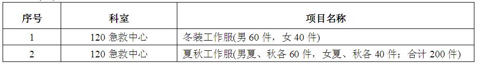 因醫(yī)院發(fā)展的需要,我院擬于近期對120急救中心工作服進(jìn)行院內(nèi)招標(biāo)采購,歡迎具備條件的公司報名參加。